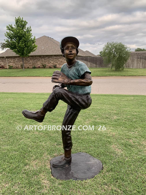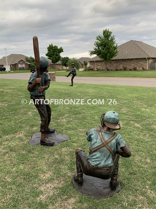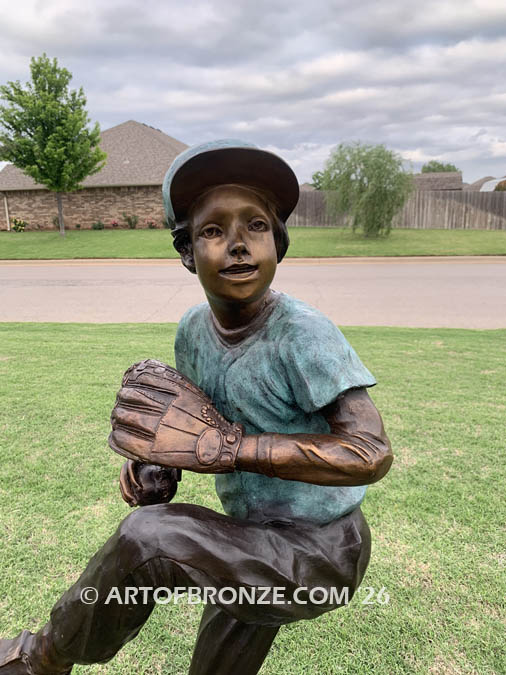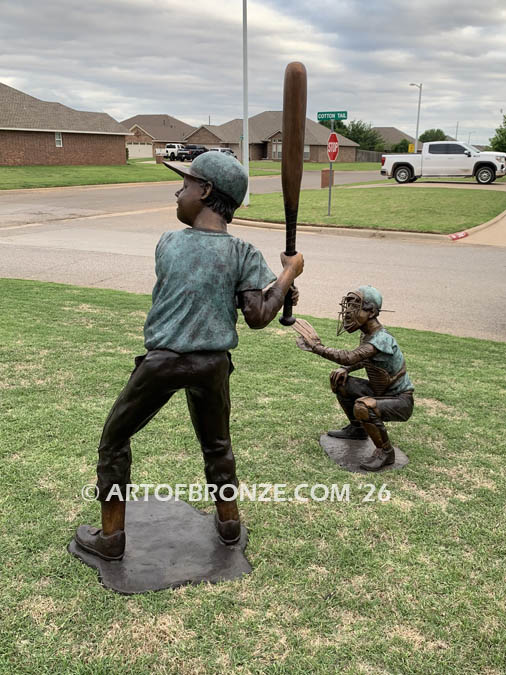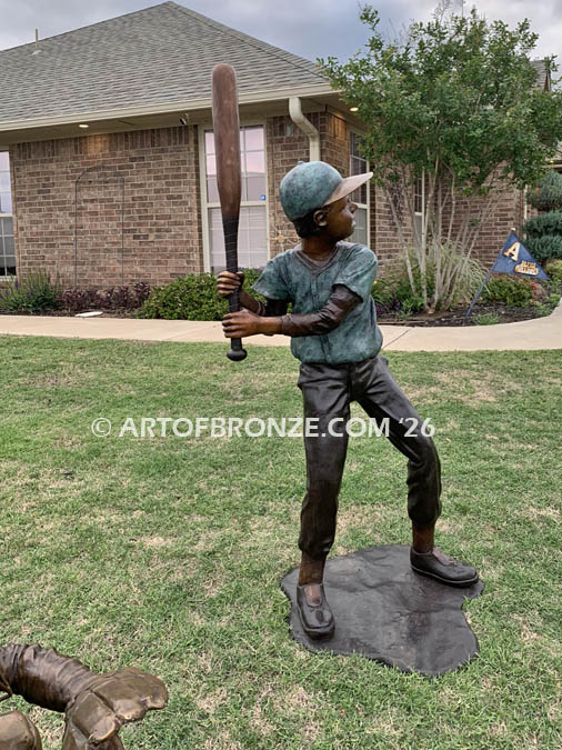 Call Art of Bronze today at (805) 908-5355 to learn more about our- outdoor bronze children’s statues – kids playing sports bronze statue – life-size baseball and sports players bronze statue- outdoor children playing sports sculptures – bronze boy pitcher and catcher baseball statues.