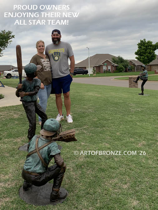 The set features a poised pitcher, an attentive catcher, and a ready batter, each sculpted with exceptional detail and expressive realism. From the natural stances to the subtle movement in their uniforms, every figure reflects the artistry and craftsmanship for which Art of Bronze is known.