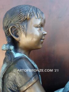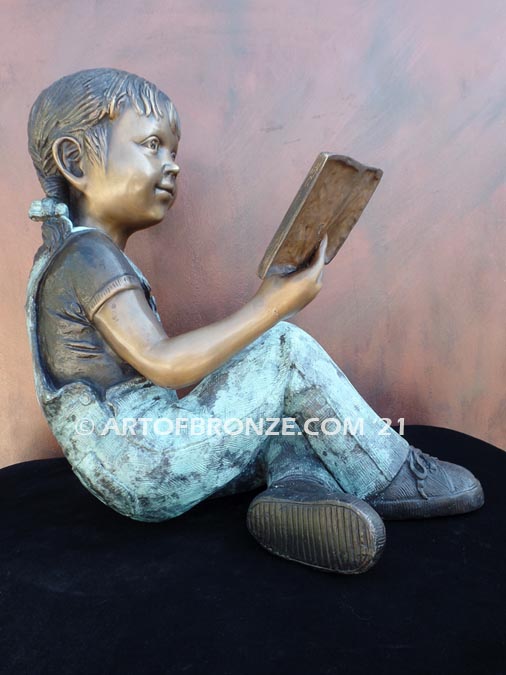 Call Art of Bronze today at (805) 908-5355 to learn more about our – indoor children sculptures – girl reading book bronze statue – bronze sitting girl indoor statue – whimsical kids statue art – children reading book statue artwork.