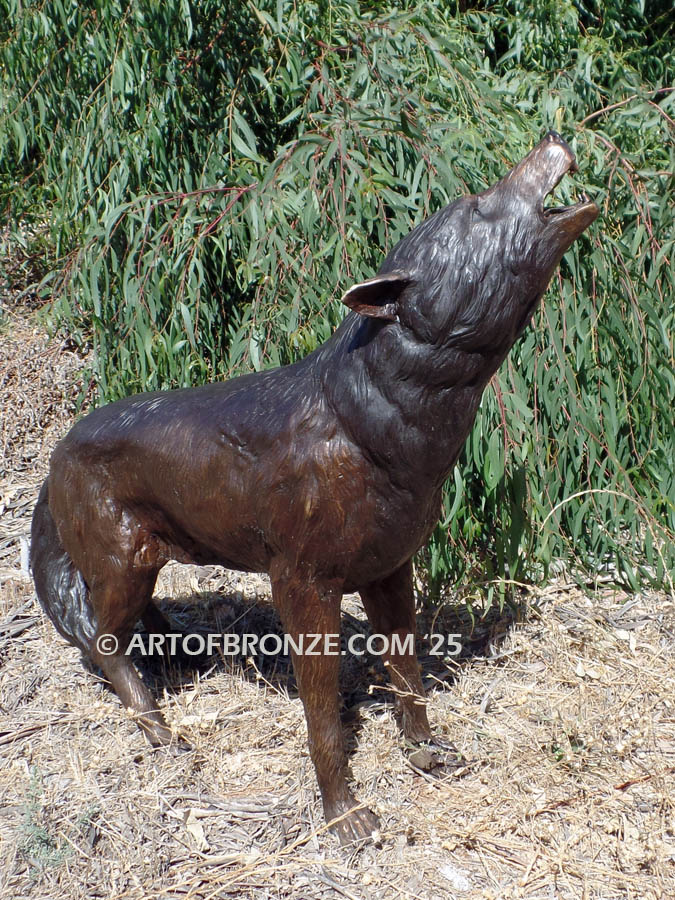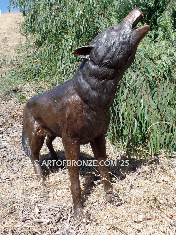 Great care was taken to achieve an authentic howling posture, from the natural tension in the wolf’s body to the detailed texture of the fur and lifelike anatomy. This sculpture is finished in a rich custom black and brown patina that enhances depth and realism while ensuring long-lasting beauty in outdoor environments.