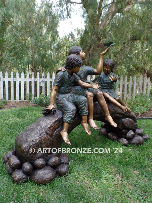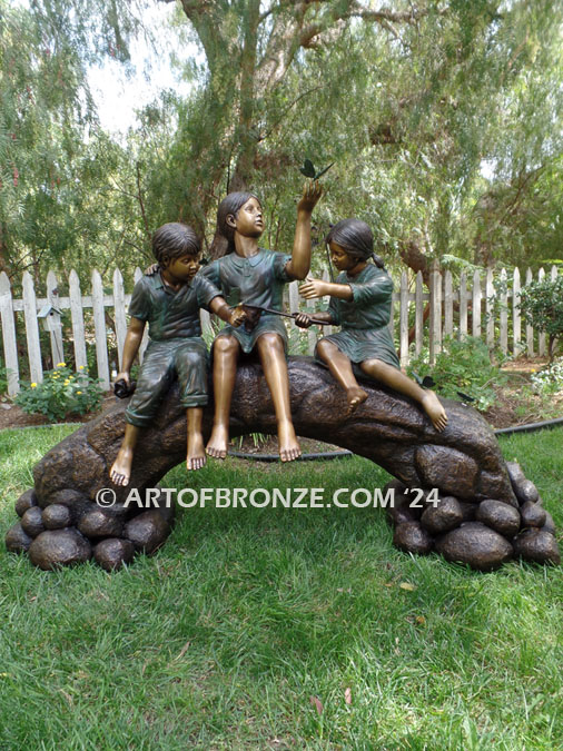 Call Art of Bronze today at (805) 908-5355 to learn more about our- outdoor bronze children’s statues – kids playing bronze statue – life-size boys and girls on log bronze statue- outdoor children sitting on bronze log monument – bronze children artwork.
