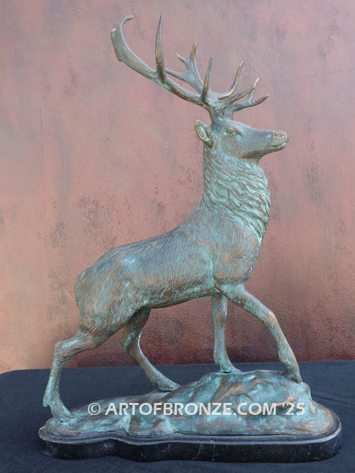 Perfect for display in a living room, office, lodge, or wildlife-inspired collection, this elk statue is available in your choice of light brown patina for a natural look or a bold all-green patina for a more dramatic presentation.