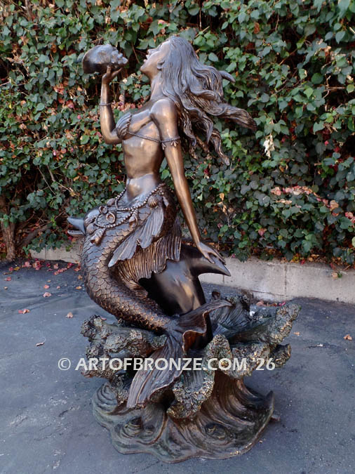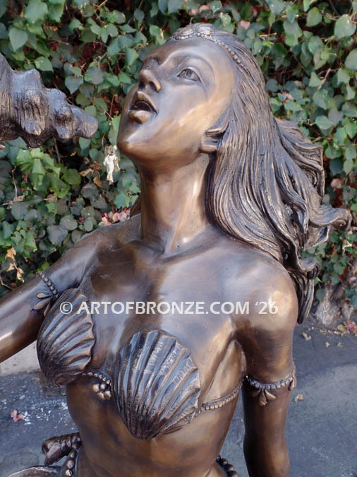 High quality bronze mermaid, siren and merman statues. Exquisite detailing and realism. Indoor and outdoor mermaid and dolphin fountains.