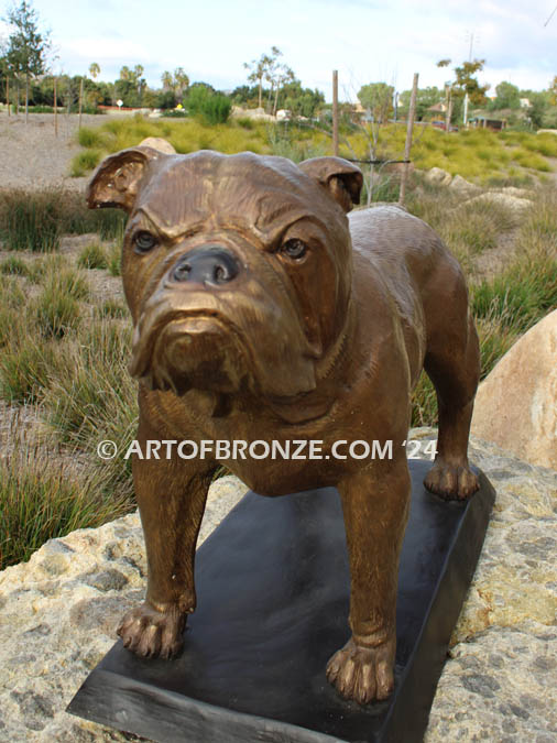 Meticulously sculpted, every detail captures the essence of this beloved breed—from the large head and broad shoulders to the small ears and delightful folds of loose skin around its face. Mounted on a sturdy rectangular bronze base, this statue is designed for durability and can be displayed both indoors and outdoors. Additionally, it makes for a cherished school mascot, embodying pride and spirit.