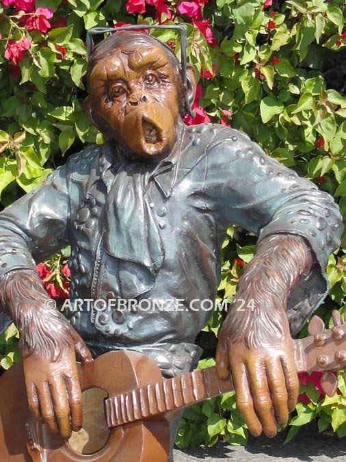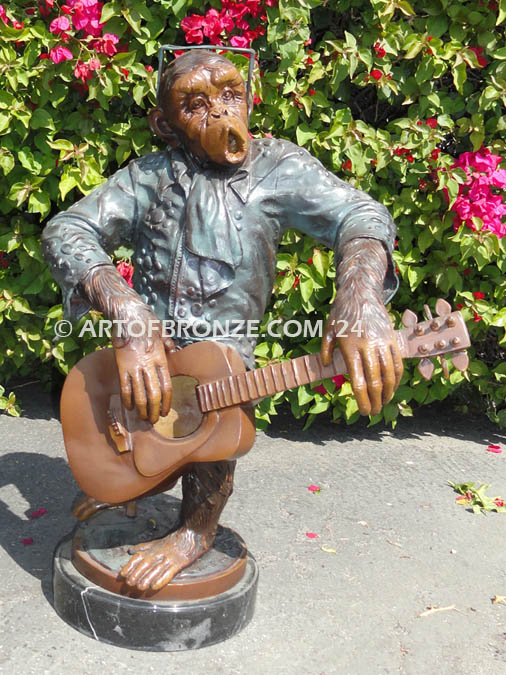 Call Art of Bronze today at (805) 908-5355 to learn more about our- whimsical chimpanzee and monkey sculptures – bronze chimpanzee musician– bronze monkey sculpture – bronze chimpanzee statue – statue of musical chimpanzee playing flamenco guitar – whimsical monkey musical artwork.