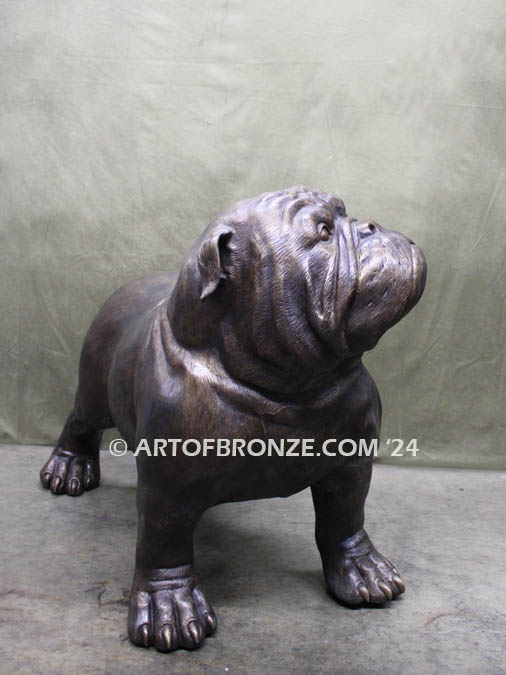 Elevate your school spirit with the dynamic presence of our spirited bulldog mascot bronze statue, proudly presented by Art of Bronze. Standing at an impressive 4 ft. in length, this masterpiece commands attention and becomes the focal point of your school campus, injecting excitement and pride into every glance.