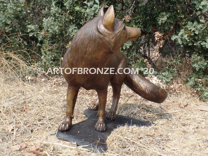 Call Art of Bronze today at (805) 908-5355 to learn more about our- outdoor wildlife bronze statues – bronze fox statue – outdoor male ‘dog fox’ bronze sculpture – whimsical standing bronze fox – life-size fox sculpture – bronze standing fox outdoor artwork.