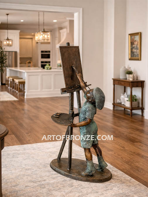 Placing this painter boy bronze statue within your space infuses it with the spirit of artistic exploration and the joy of creation. Whether displayed indoors or outdoors, it becomes a source of inspiration, sparking conversations about the beauty of art and the role it plays in our lives.