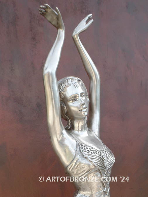 Finished in a shimmering silver patina, this sculpture reflects light beautifully, highlighting the delicate curves and flowing lines that define the dancer’s form. The result is a breathtaking portrayal of motion suspended in time — both dynamic and serene.