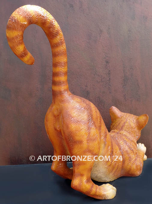 With her head tilted upward and eyes lifted as if following a toy or inviting interaction, this charming pose perfectly expresses a cat’s mischievous and affectionate personality. The sculpture radiates energy and curiosity, instantly bringing warmth and joy to any space.