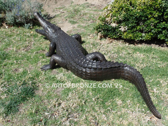 We specialize in custom commissions and can create any concept or idea you have into bronze. Call Art of Bronze today at (805) 749-2812 to learn more about our – realistic alligator & crocodile bronze sculptures – walking alligator bronze statue – African animal garden decor – bronze alligator sculpture– alligator fountain.