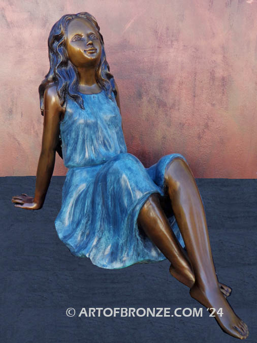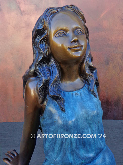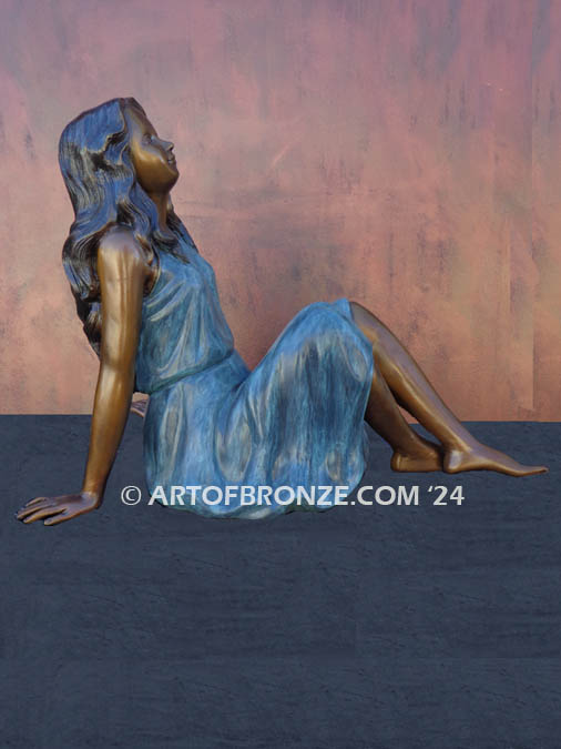 Art of Bronze proudly presents this delightful bronze sculpture of a young lady captured in a quiet moment of reflection. Resting gently as she gazes upward, her expression is serene and contemplative, evoking a sense of calm, innocence, and daydreaming.