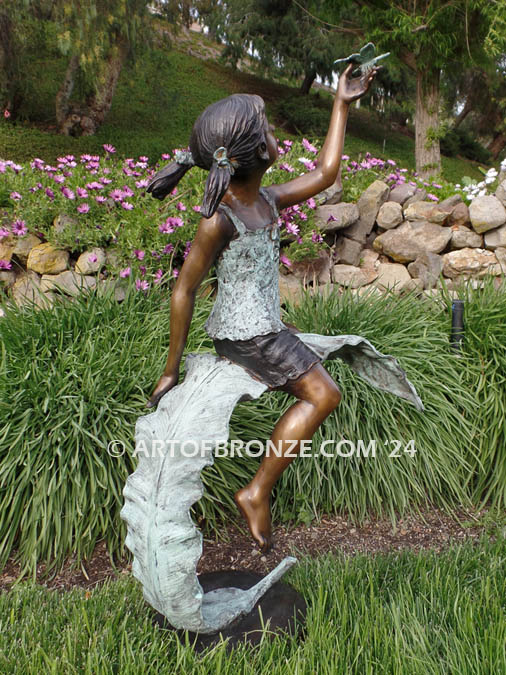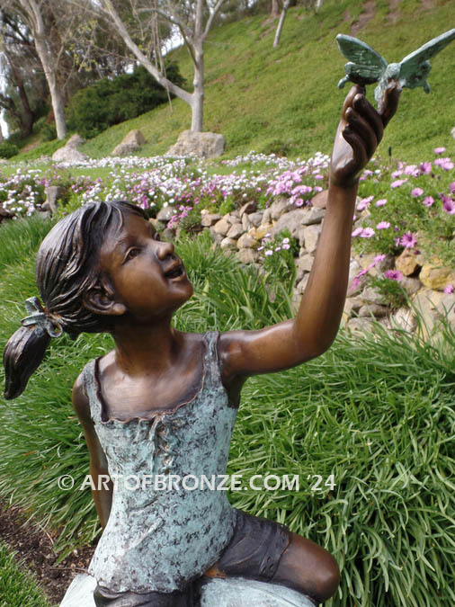 Art of Bronze is thrilled to present this fantasy bronze statue that promises to transform your courtyard or landscaping into a realm of wonder—a portrayal of a young girl sitting atop a leaf with a delicate butterfly perched on her finger. This delightful artwork captures the magic of nature and the joy of a serene moment in a garden oasis.