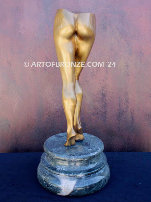It is with great enthusiasm that Art of Bronze presents this captivating nude female bronze sculpture featuring a beautifully shaped legs and torso design. This unique work of art invites viewers to explore and expand their imagination with its elegant, minimalist form. Beginning with finely detailed toes and uplifting heels, the sculpture gracefully extends into long, slender legs that exude both strength and poise. Unadorned by clothing, the smooth lines continue up to the torso, ending just below the belly button, allowing the natural beauty of the human figure to shine through.