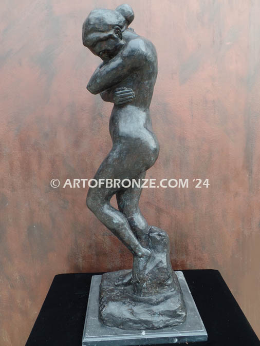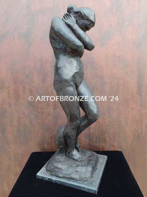 Art of Bronze proudly offers this exquisite after cast of Auguste Rodin’s iconic bronze sculpture, Eve. Created as a companion piece to Adam for Rodin’s monumental work The Gates of Hell, Eve stands as one of the artist’s most emotionally powerful and enduring figures.