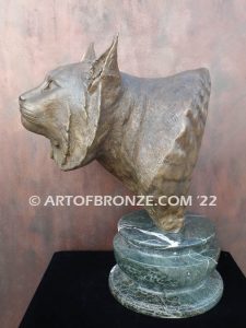 Call Art of Bronze today at (805) 908-5355 to learn more about our- outdoor wildlife bronze statues – bronze wildcat – outdoor bobcat bust statue – life-size bobcat sculpture – bobcat, red lynx, lynx rufus bronze artwork – wildcat school mascots.