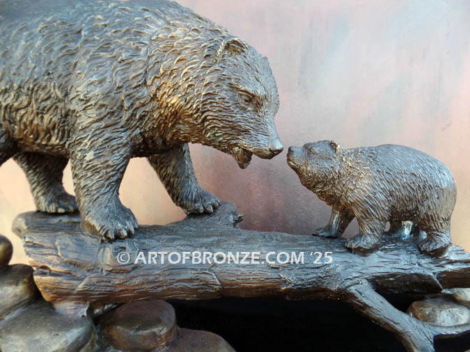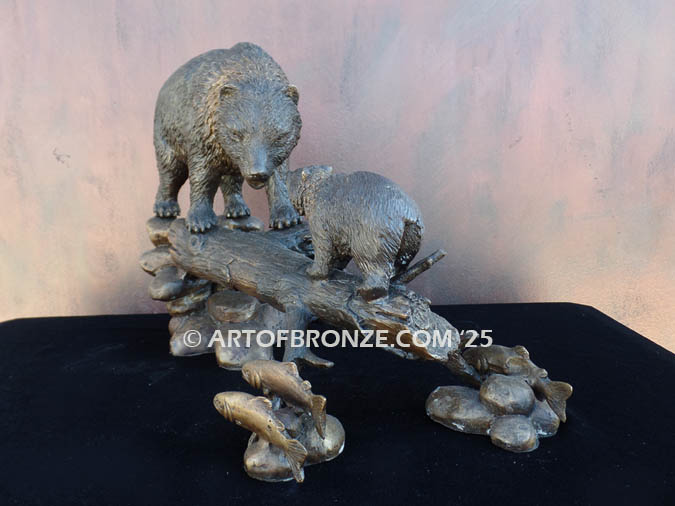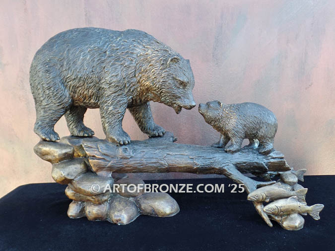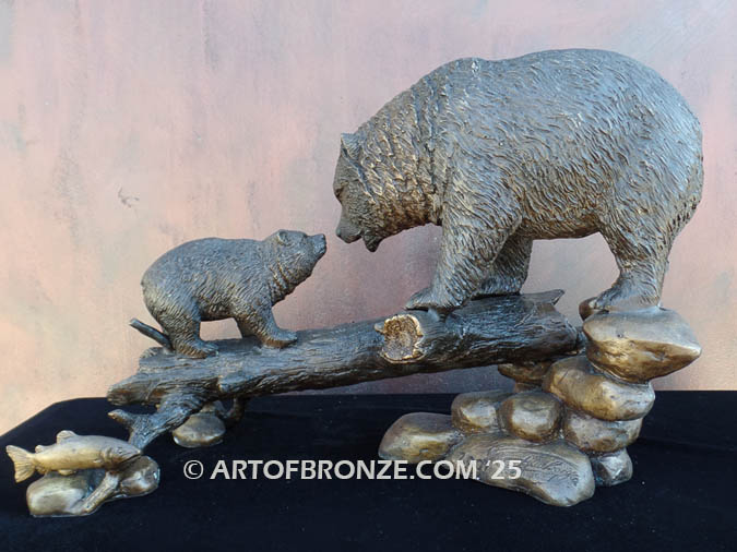 Art of Bronze brings the strength, intelligence, and tender spirit of North America’s wild bears to life in this captivating bronze sculpture of a mother bear teaching her cub to fish.