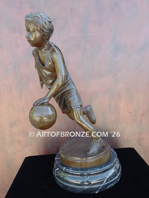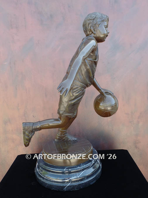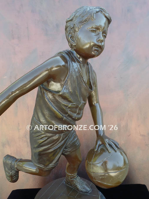 Call Art of Bronze today at (805) 908-5355 to learn more about our- outdoor bronze children’s statues – kids playing sports bronze statue – life-size basketball and sports players bronze statue – outdoor children playing sports sculptures – bronze statue boy dribbling basketball and basketball boy sculpture.