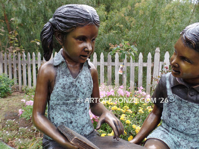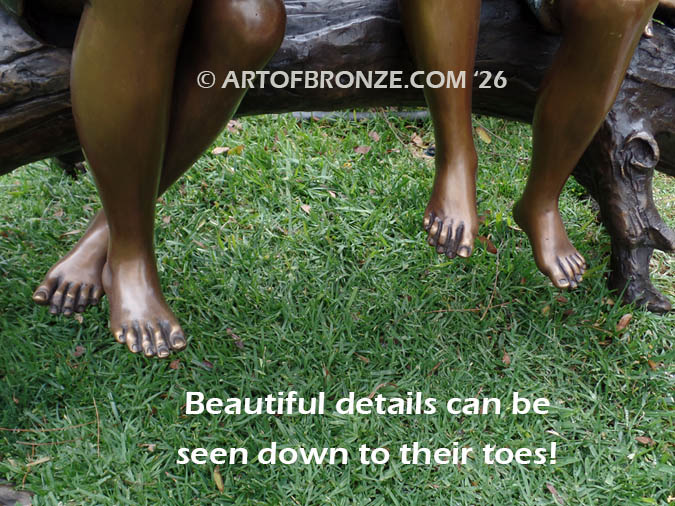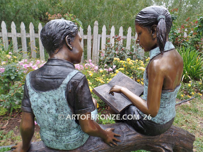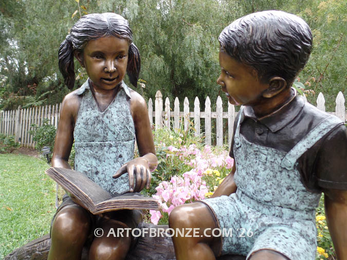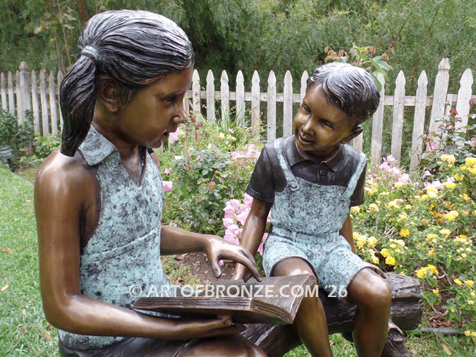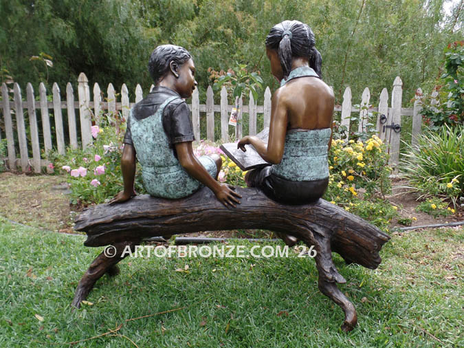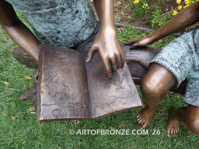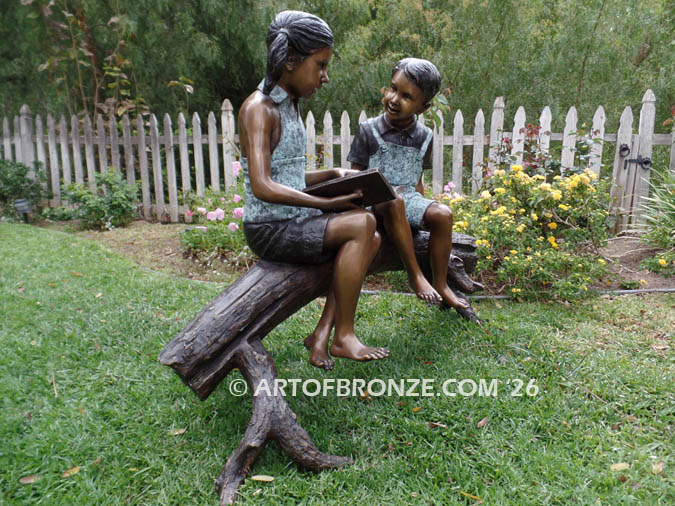 Art of Bronze takes great pride in presenting this captivating bronze sculpture of older sister sharing the joy of reading with her younger brother as they sit atop a log. This heartwarming artwork not only celebrates the bond between siblings but also embraces the beauty of shared experiences and the lessons learned through them.