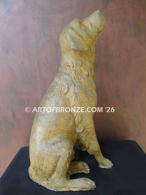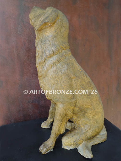 Seated comfortably and gazing upward with a relaxed, trusting expression, this sweet dog appears to be patiently waiting for attention from his owner. The pose conveys devotion, calmness, and quiet joy—qualities that make this sculpture instantly endearing.