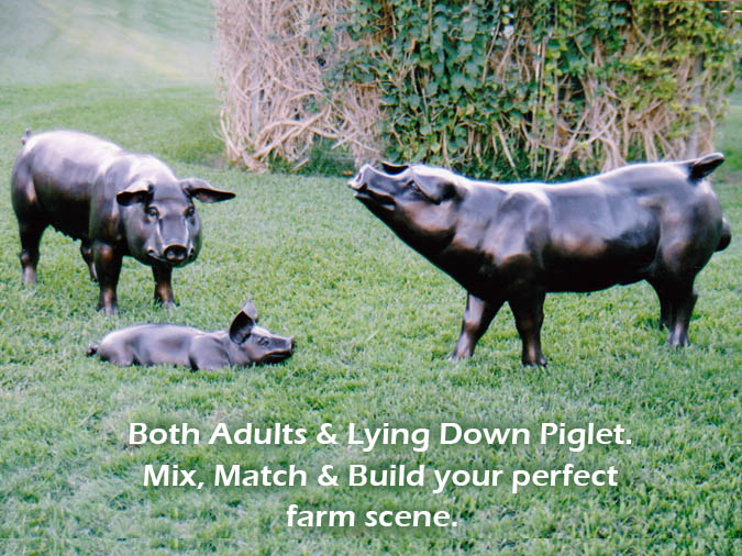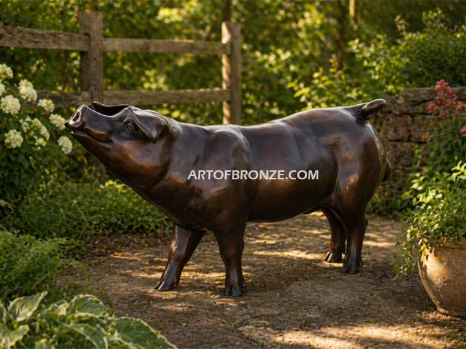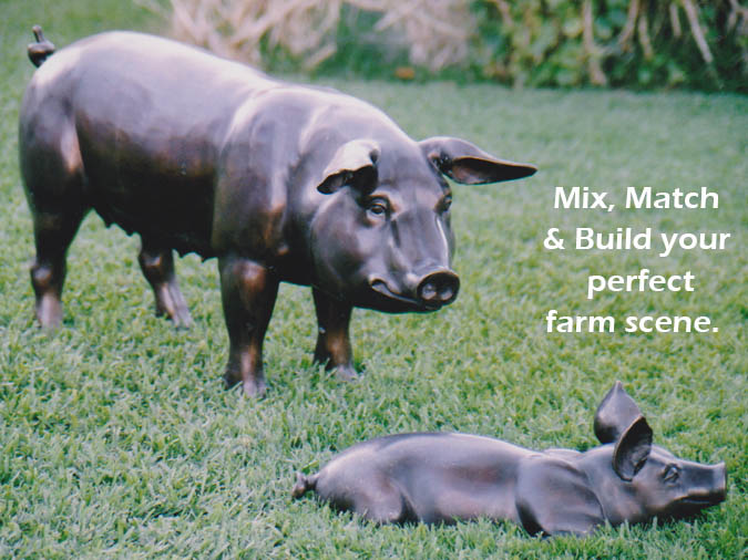 We specialize in custom commissions and can create any concept or idea you have into bronze. Call Art of Bronze today at (805) 908-5355 to learn more about our – realistic pig, swine, hog or domestic pig sculptures – pig family bronze statue – Pig animal garden decor – bronze pig & piglet sculpture– life-size pig statues.