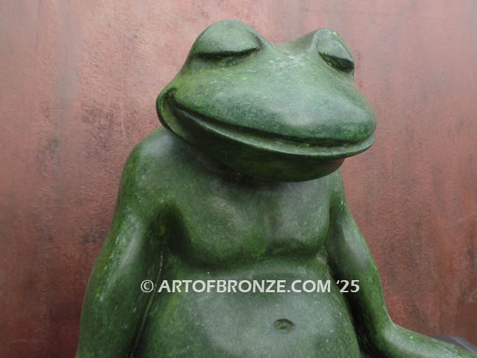 Call Art of Bronze today at (805) 908-5355 to learn more about our whimsical amphibian and frog bronze sculptures – bronze frog meditating statue – green frog & tree bronze statue – bronze toad sculpture– bronze frog sculpture artwork – outdoor garden meditating frog.