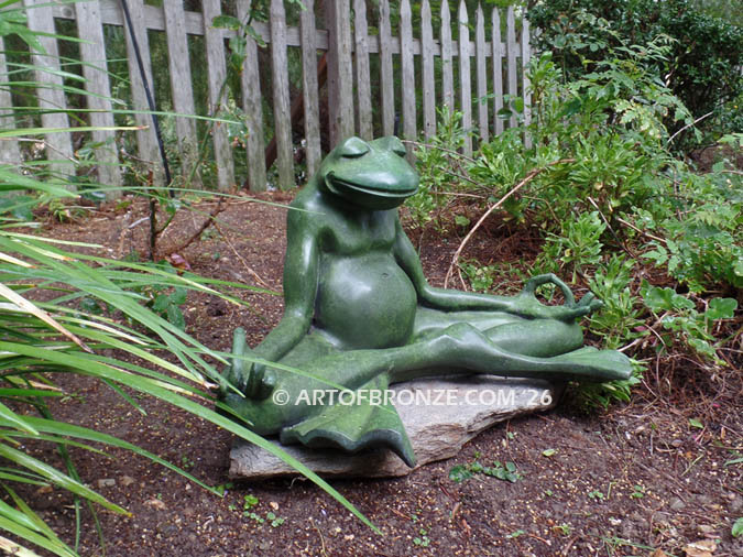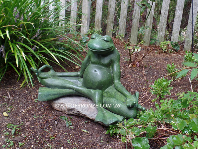 Seated in a classic meditative pose, the frog sits cross-legged with thumb and middle finger gently touching, symbolizing balance and harmony between body and spirit. His relaxed posture and content expression capture a sense of inner peace that is sure to bring a smile to all who pass by.