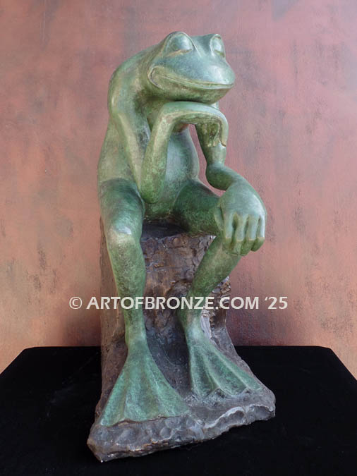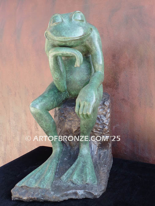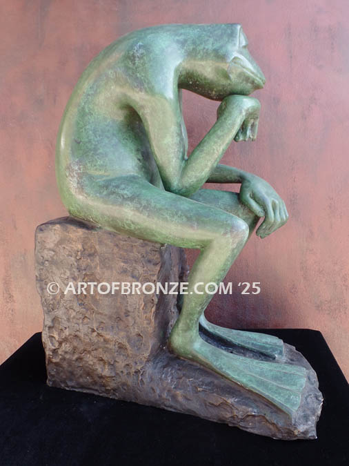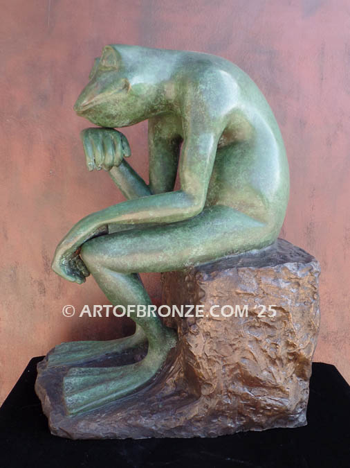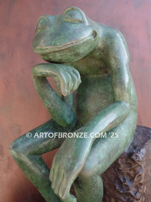 • Frog Thinker bronze sculpture of frog deep in thought inspired from Auguste Rodin