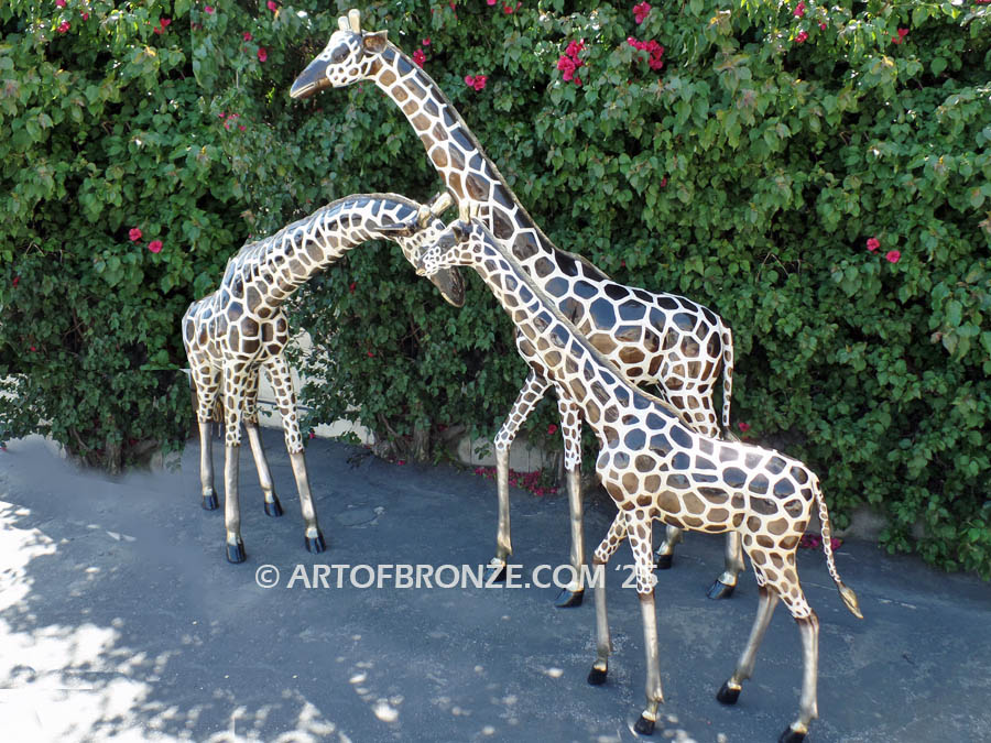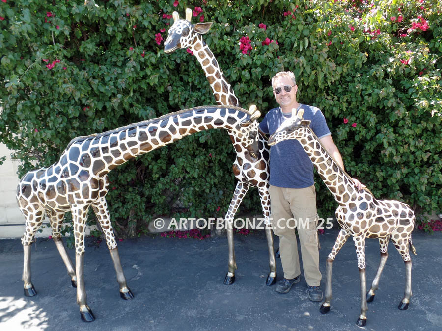 Call Art of Bronze today at (805) 908-5355 to learn more about our- outdoor wildlife bronze statues – bronze African giraffe statue– outdoor standing giraffe family sculpture – life-size bronze giraffe sculpture and bronze artwork.