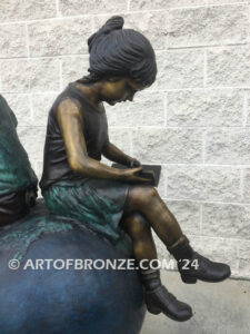 Call Art of Bronze today at (805) 908-5355 to learn more about our- outdoor bronze children’s statues – boy and girl reading school bronze statue – children reding bronze sculpture- outdoor children garden sculptures – bronze boy and girl reading on world globe sculpture – outdoor bronze children artwork.