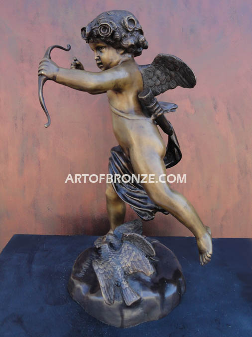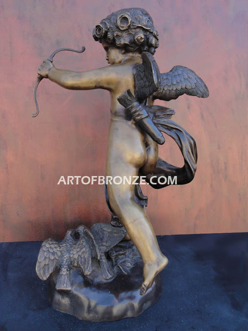 This exquisite bronze sculpture depicts Cupid, the Roman god of love, captured in a tender and timeless moment as he draws his bow and arrow. Rich in symbolism and fine detail, the sculpture reflects the enduring power of love and romance through masterful bronze craftsmanship.