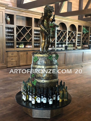 This intoxicating bronze sculpture features a standing cherub boy atop an aged wine barrel holding a bucket of grapes. It takes the viewers imagination to Italy during the “Harvest Time.” The exceptional detail and handcrafted artistry was custom created exclusively for two world-class wineries. To create your own custom work of art call Art of Bronze today and speak with a consultant.