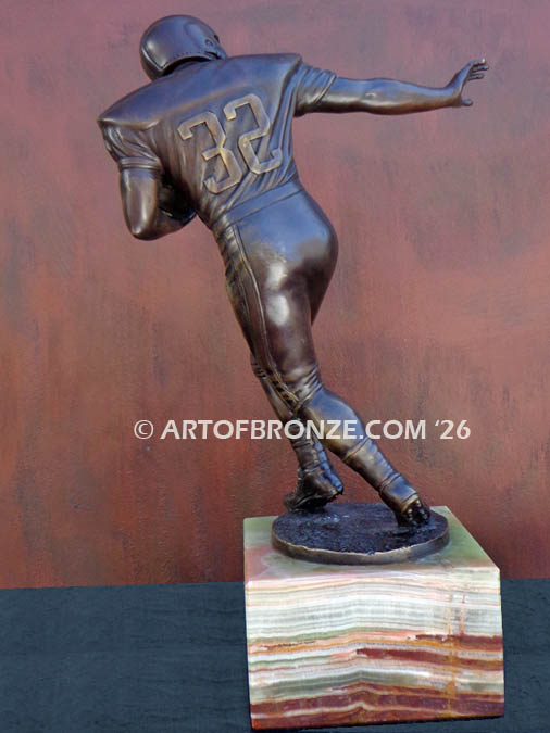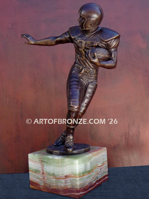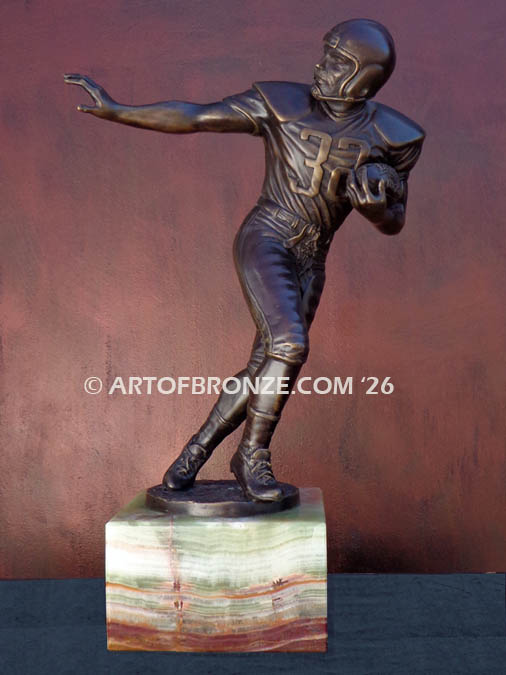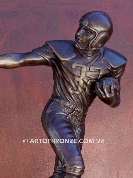 This unique bronze work of art makes an exceptional statement piece for any football enthusiast, collector, or display space, honoring the enduring legacy of the sport.