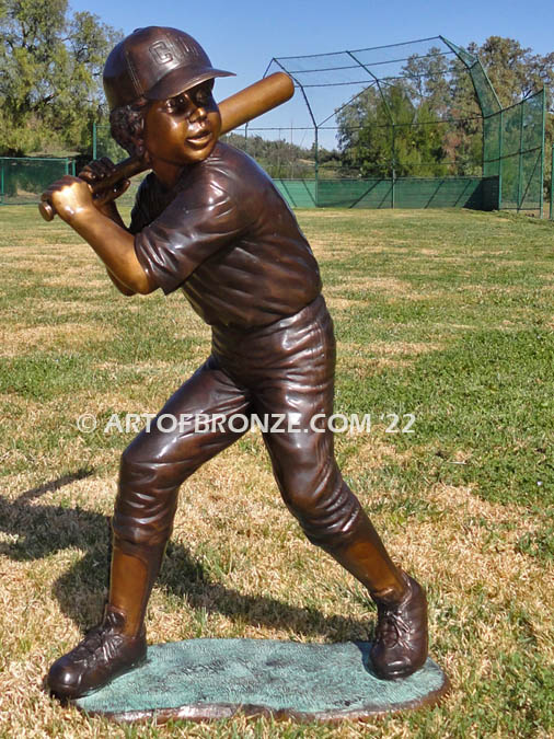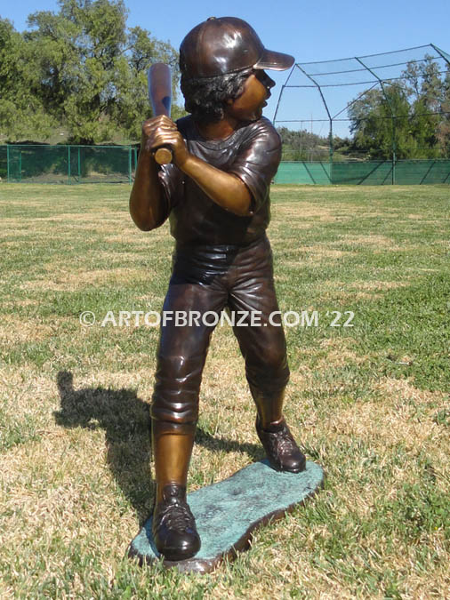 Call Art of Bronze today at (805) 908-5355 to learn more about our- outdoor bronze children’s statues – kids playing sports bronze statue – life-size baseball and sports players bronze statue- outdoor boy hitting baseball sculpture – boy batting bronze baseball statues.