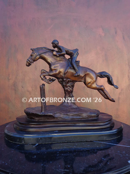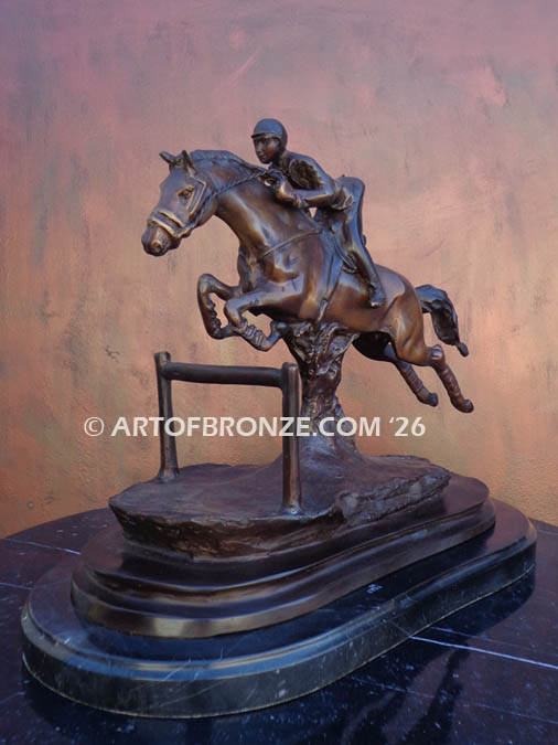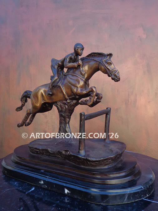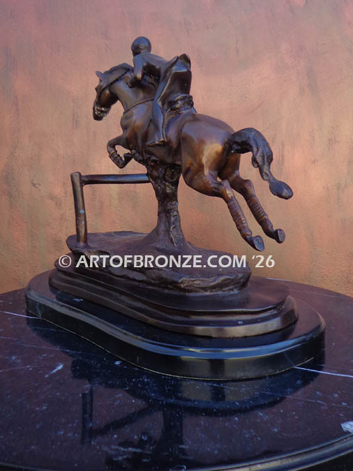 Call Art of Bronze today at (805) 908-5355 to learn more about- equine horse sculpture art, fine art horse sculpture, reared show jumping equestrian bronze statue, hunter/jumper equestrian artwork.