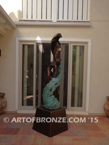 Our bronze statues are cast in the ‘lost wax’ process and hand finished in custom patina colorings. Copper tubing in the dolphins’ bill allows water to shoot or flow out turning this into a wonderful water fountain.