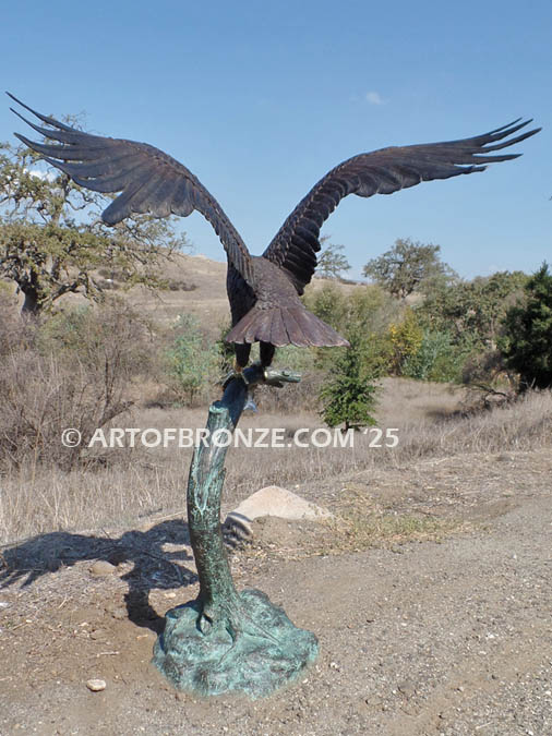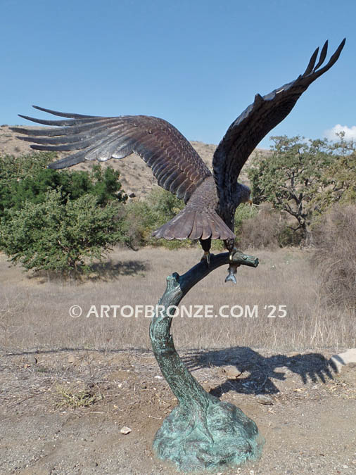 Call Art of Bronze today at (805) 908-5355 to learn more about our- outdoor Audubon statues – large bronze eagle sculpture – flying American bald eagle on branch statue – birds of prey bronze statue – monumental bald eagle sculpture – bald eagle lifting off bronze statue – eagle bronze artwork.