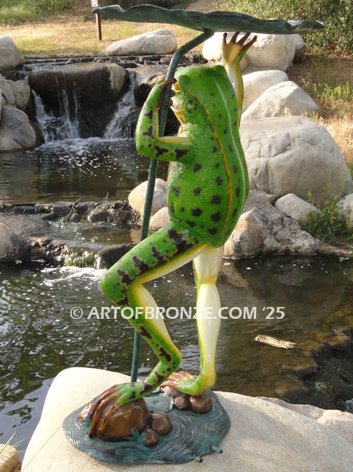 Call Art of Bronze today at (805) 908-5355 to learn more about our- whimsical amphibian and frog bronze sculptures – bronze frog under leaf statue – green frog & tree bronze statue – bronze toad sculpture– bronze frog fountain.