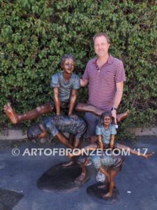 Call Art of Bronze today at (805) 908-5355 to learn more about our- outdoor bronze children’s statues – boy & girl playing bronze statue – leapfrog bronze statue- outdoor children garden sculptures – bronze boy and girl jumping sculpture – children and kid bronze artwork.