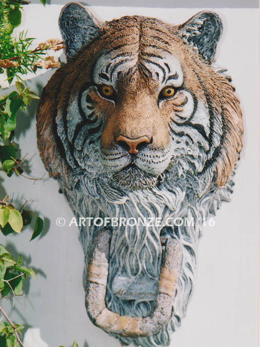 Call Art of Bronze today at (805) 908-5355 to learn more about our- wildlife bronze door knockers – bronze tiger head door decorations – outdoor tiger bust door knocker – Asia tiger bronze doorknocker & wall decorative artwork.