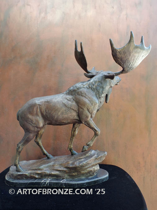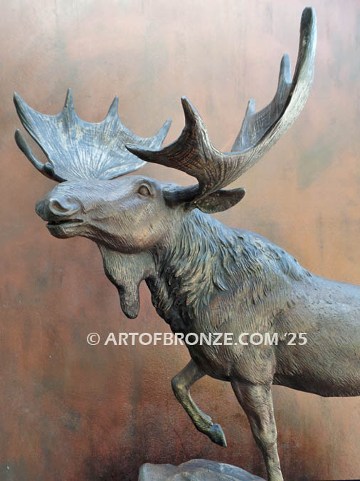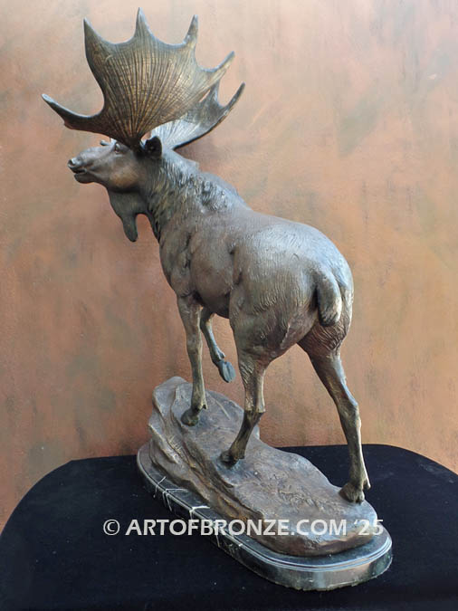 Call Art of Bronze today at (805) 749-2236 to learn more about our- outdoor wildlife bronze statues – bronze North American moose statues – outdoor standing moose bronze statue – bronze moose with antlers sculpture –moose bronze artwork.