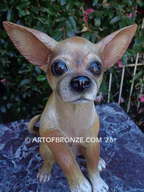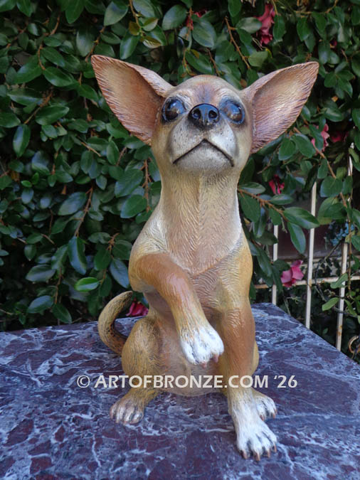 Art of Bronze proudly presents this irresistibly adorable, life-size bronze Chihuahua sculpture—a heart-melting work of art that captures the playful spirit and loyal personality of this beloved breed.