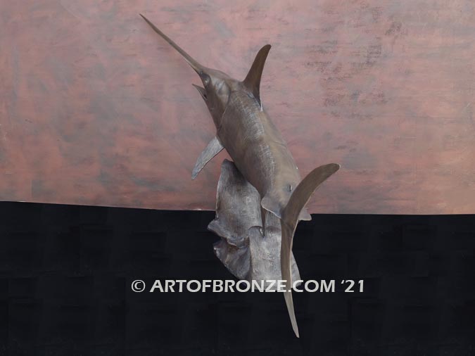 We specialize in custom commissions and can create any concept or idea you have into bronze. Call Art of Bronze today at (805) 908-5355 to learn more about our sportfishing and oceanic bronze sculptures – bronze swordfish life-size statue – wall mount swordfish bronze statue – bronze sailfish & swordfish sculpture– bronze sportfishing wall mount artwork.
