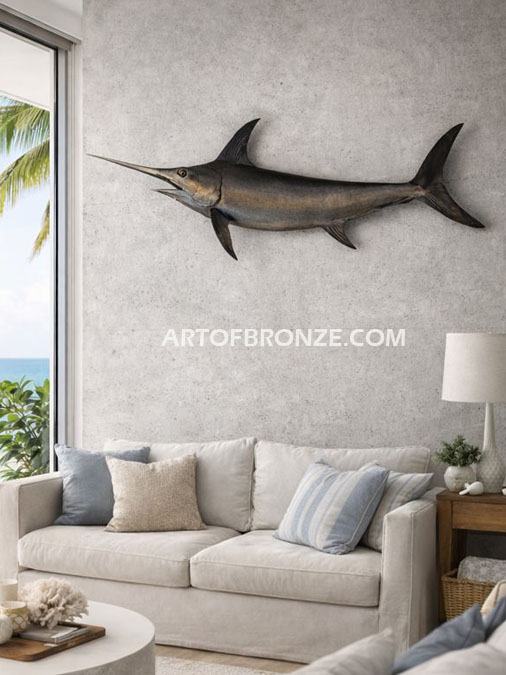 We specialize in custom commissions and can create any concept or idea you have into bronze. Call Art of Bronze today at (805) 908-5355 to learn more about our sportfishing and oceanic bronze sculptures – bronze swordfish life-size statue – wall mount swordfish bronze statue – bronze sailfish & swordfish sculpture– bronze sportfishing wall mount artwork.