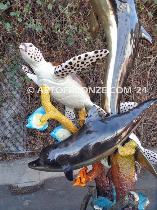 Call Art of Bronze today at (805) 908-5355 to learn more about our – dolphin sculpture – marine life gallery artwork – aquatic mammal statues – life-size jumping dolphin sculptures – outdoor dolphin fountain, whale and porpoise sculptures.