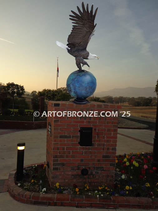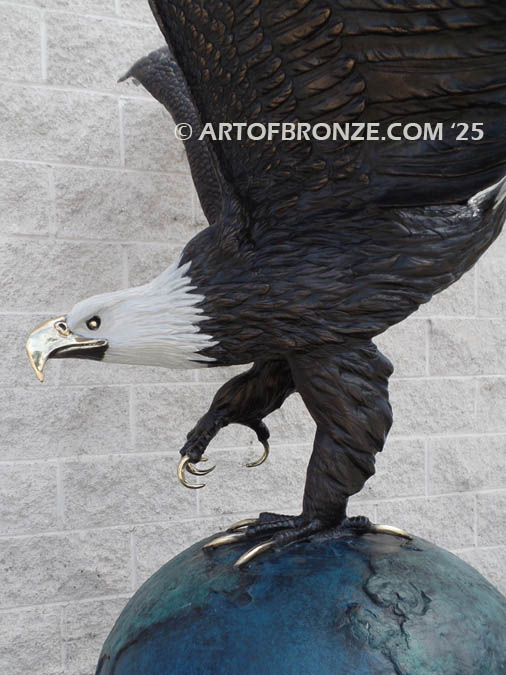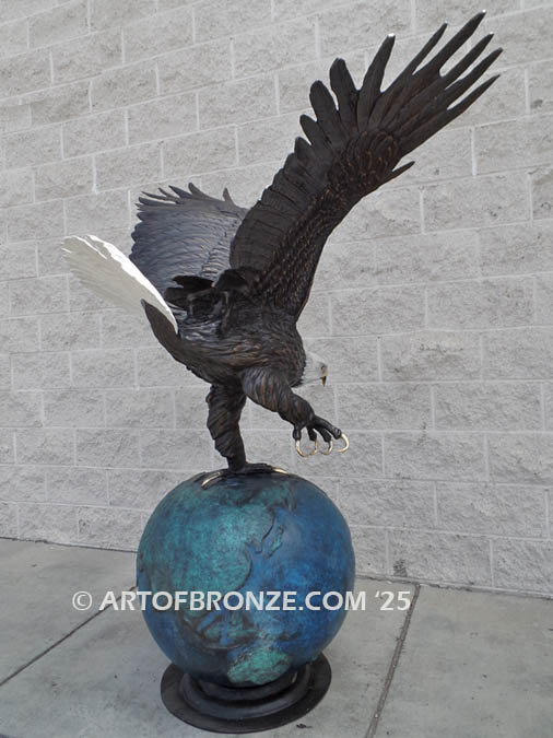 Call Art of Bronze today at (805) 908-5355 to learn more about our- outdoor Audubon bronze statues – bronze American bald eagle sculpture – outdoor eagle monument statue – bronze eagle lifting off globe – custom eagle sculpture and artwork.