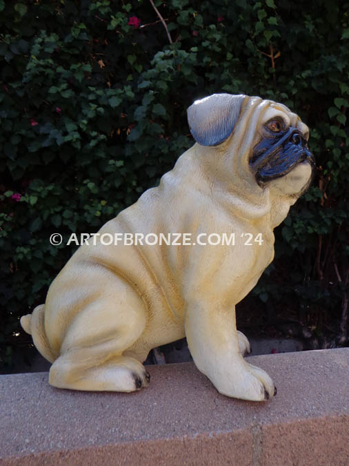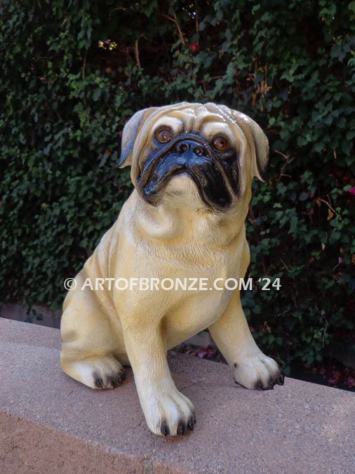 • Pug gallery quality, custom sitting dog bronze statue artwork