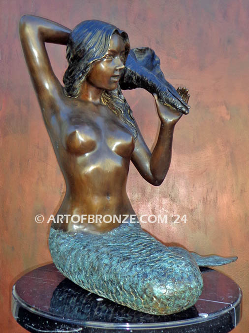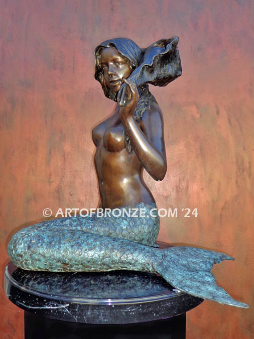 Call Art of Bronze today at (805) 908-5355 to learn more about our- outdoor mermaid, mermen, sea nymph and siren bronze statues – bronze mermaid holding shell outdoor sculpture – outdoor sitting mermaid statue – mermaid resting in the sun bronze statue – exotic mermaid ocean bronze sculptures.