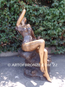Call Art of Bronze today at (805) 908-5355 to learn more about our- outdoor figurative bronze statues – woman resting on rock art nouveau bronze statue – beautiful female statue – nude and female figure bronze sculpture artwork.