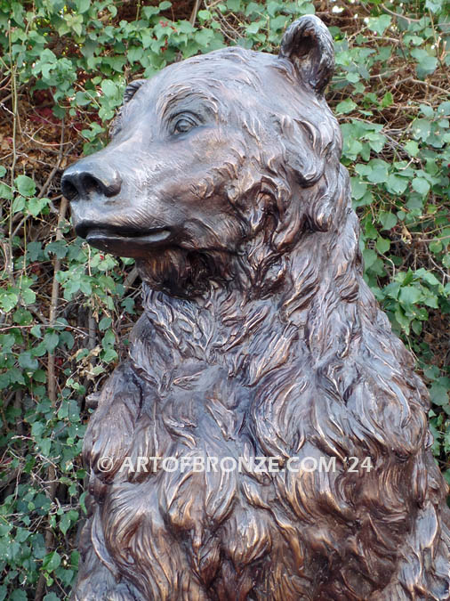 Expert craftsmanship is evident throughout the sculpture, from the deeply sculpted musculature to the thick, richly textured fur styling that emphasizes the bear’s massive stature and raw strength. The detailed anatomy and natural posture create a sense of realism and movement rarely captured in bronze. Finished in a hand-applied patina, this monumental bear sculpture is designed to make a bold statement while celebrating the untamed beauty of wildlife.